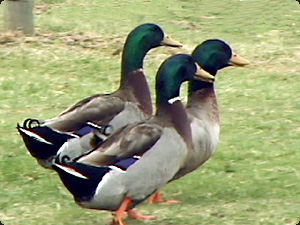 Утка, /животное/ одно, среди уток этих имеет голову белую. И другое /животное/ одно имеет голову зелёную. |