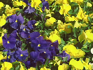 | Ci sono fiori gialli intorno ai fiori blu. |
