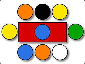 Квадраты, часть большая (большинство), сбоку от круга. |