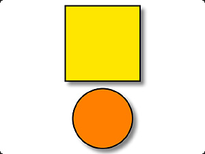 | Il cerchio è davanti al rettangolo. | Круг перед прямоугольником. | ||