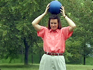| La donna tiene una palla sopra la testa. | Женщина держит мяч над головой. | ||