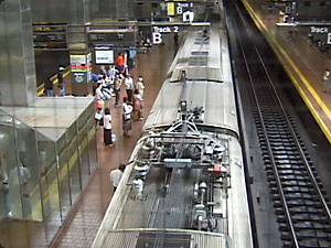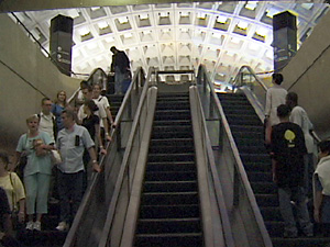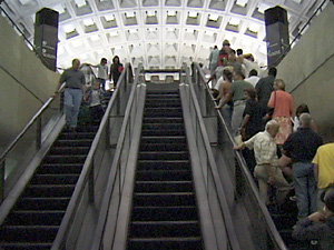Лишь несколько людей движутся вниз /прибывают/. Но имеется людей кол-во большое движутся вверх /идут/ |