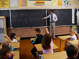 | La maggior parte delle persone è seduta, ma una è in piedi. |