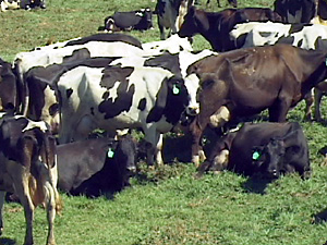 "Коровы группа большая" лежат. Но есть лишь несколько /животных/ (которые) стоят. |