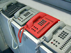 Имеется телефон только /устройство/ один среди телефонов /группа/ этих который красный. |