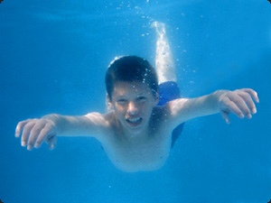 | Il bambino sta nuotando sottacqua. | Мальчик плывёт под водой. | ||
