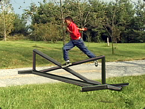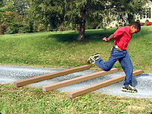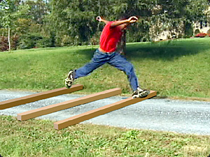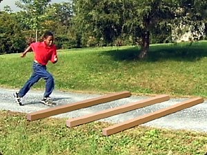 | Il bambino sta saltando le pertiche. | Мальчик прыгает через балки. | ||