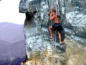 | L’uomo sta usando una corda. | Мужчина использует верёвку. | ||