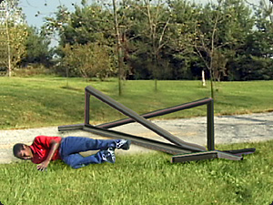 Мальчик пытается /что/ /будет/ прыгать через (перепрыгнуть) препятствие. |
