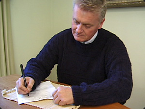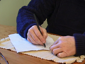 | L’uomo sta usando una penna. | Мужчина использует ручку/перо. | ||