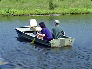 | Loro stanno usando una barca per attraversare l’acqua. |