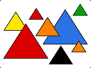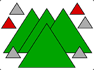 | Tutti i triangoli grandi sono verdi, e alcuni dei triangoli piccoli sono grigi. |