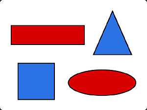 Фигуры, две /части/ эти, красные и две /части/ эти синие. |