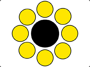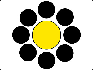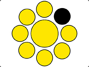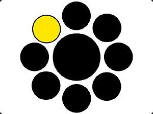 Круг, /круг/ один - чёрный. И /круги/ иные/остальные - жёлтые. |