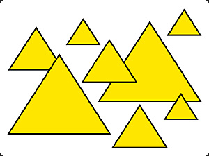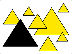 | Quasi tutti i triangoli sono gialli, ma uno è nero. |