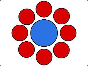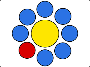 Круги, одни /круг/, синий. И /круги/ иные красные. |