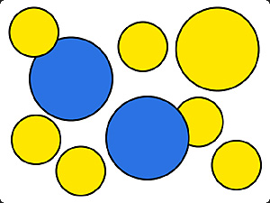 Круги, почти все, жёлтые. И ещё два /круга/ синие. |