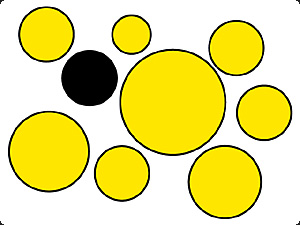 Круги, почти все, жёлтые. но имеется /круг/ один чёрный. |