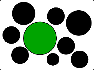 Круги, часть большая, чёрные. И ещё /круг/- зелёный. |