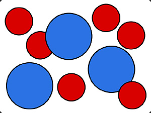 | I cerchi blu sono grandi e quelli rossi sono piccoli. |