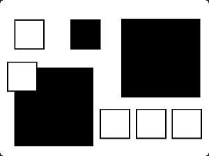 Квадраты чёрные, почти все, /оно/ большие. и /части/ (другие квадраты) белые все маленькие. |