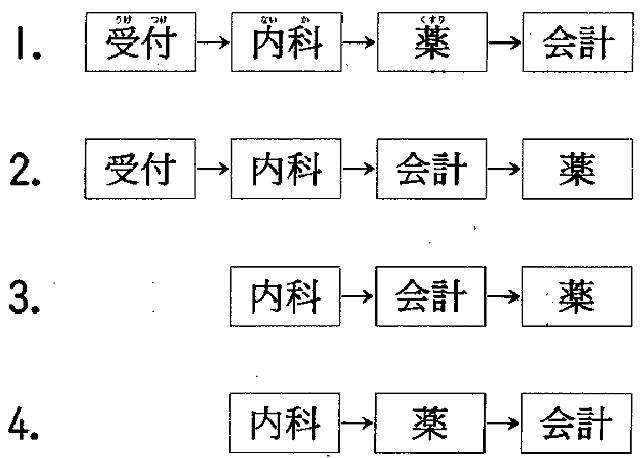 10番 看護婦さんが患者さんに次の診察について話しています。この患者さんは次の診察の時どうしますか。 女:はい
