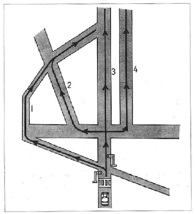 11番 男の人と女の人が車の中で話しています。二人はどの道を通りますか。 女:ちょうど良かったわ、この信号で止