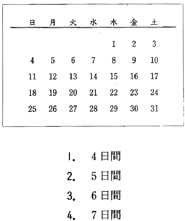 13番 店長とアルバイトの学生が話しています。来月は何日間働く予定ですか。 店長:君は木曜担当だったよね。 学