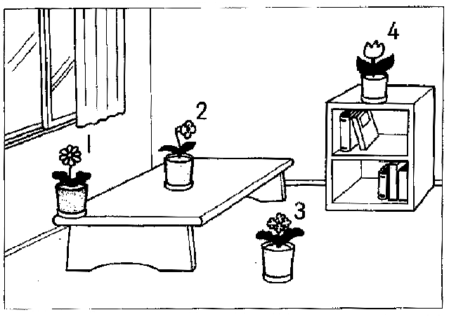 ちゃんとした所に置いて。机の真ん中とか、落ちにくい所に。 女:あ、御免。 どの花を動かせと言っていますか。