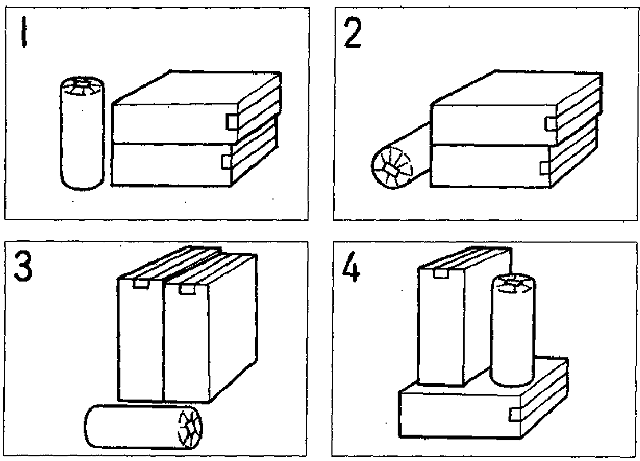 4番 男の人が荷物について話しています。どの置き方なら良いですか。 男:この丸いのは、これは転がりやすいから、