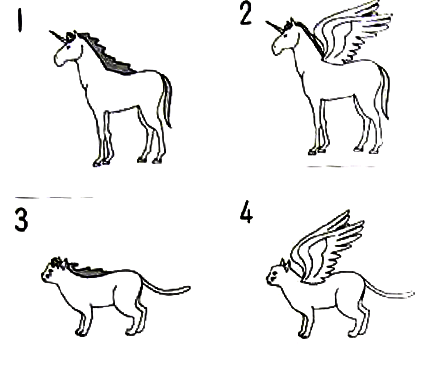 聴解スクリプト: 1-11 男の人と女の人が漫画の中の動物について話しています。どんな動物ですか。 男:今度の漫画の動物、こんなの、どう?馬のような動物で、背中に翼があって 空を飛べるんだ。 女:うーん。わりと平凡ね。馬じゃなくて、猫にしない? 男:翼がある猫か。うん、いいね。 どんな動物ですか。
