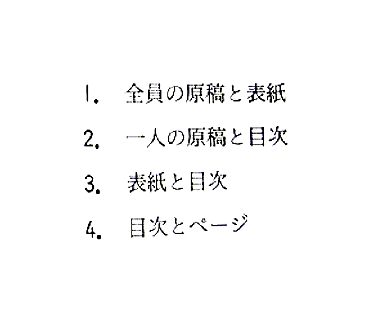 聴解スクリプト: 1-14 先生と生徒がクラスの作文集について話しています。後、何と何が足りませんか。 先生:これで原稿はみんな揃った? 生徒:後は山田さんのだけです。 先生:表紙と目次はできてる? 生徒:表紙は吉田さんがきれいな絵を画いてくれましたが、目次はこれからです。 先生:ページはつけた? 生徒:はい、大丈夫です。 後、何と何が足りませんか。