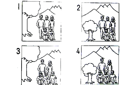 聴解スクリプト: 1-2 男の人と女の人が電話で話しています。女の人はどの写真がほしいと言っていますか。 男:この間、山に行ったときの写真なんだけど、届いた? 女:うん。今ちょうど見ているところ。みんな楽しそうね。 男:どうだね。 女:もう一枚ほしいのがあるんだけど。 男:うん。どの写真? 女:前に二人座ってて、後ろ3人立っているの。 男:これかな。いや、これは前に3人いるなあ。 女:そばに大きな木があって、後ろに山が見えるの。 男:そばに大きな木がで、後ろに山か。あっ、これだな。 女の人はどの写真がほしいと言っていますか。