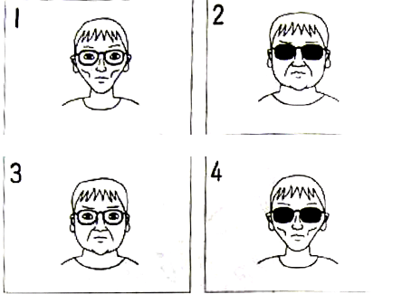 聴解スクリプト: 1-3 女の人が話しています。犯人はどれですか。 女:今日午後3時ごろ、安田町の郵便局に強盗に入り、現金500万円が奪われました。犯人 は身長175センチぐらい、痩せた中年の男で、犯行当時、黒っぽい眼鏡をかけていた ということです。現在、警察で犯人の行方を追っています。 犯人はどれですか。