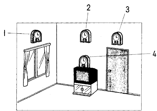 聴解スクリプト: (1) 男の人と女の人が話しています。二人はどこに時計をかけますか。 男:ほら、新しい時計を買ってきたよ。 女:ああ、ありがとう。 男:どこにかけようか。 女:そうね、テレビの上のほうは? 男:ううん、あの、窓のところでもいいんじゃない。 女:ええ、やっぱりテレビの上にかけましょうよ。 男:ねえ、ドアのところは? 女:落ちてきたら、危ない。 男:分かった。そうしよう。 二人はどこに時計をかけますか。