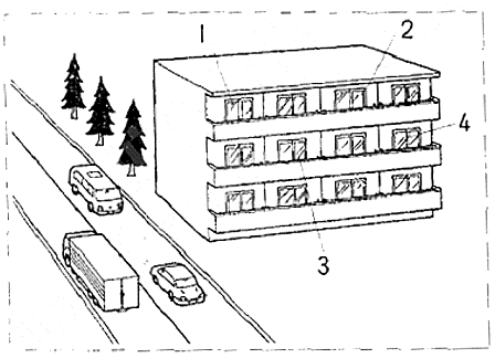 聴解スクリプト: (1) 女の人が部屋を探しています。女の人はアパートのどの部屋にしますか。 女:今、アパートに空いている部屋、ありますか。 男:ええ、4つあります。 女:何階ですか。 男:2階と3階です。 女:3階がいいですね。 男:二つあるんですが、どちらがいいんですか。 女:通りから遠いほうが…。 アパートのどの部屋にしますか。