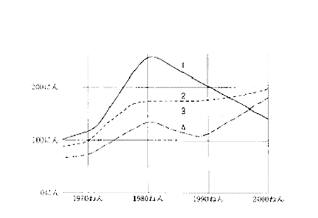 聴解スクリプト: (11) 男の人が留学生について話しています。男の人はどれを見ていますか。 男:ええ、では、こちらをご覧ください。私たちの大学に来る留学生は1970年ごろから、だんだん増え始めましたが、80年代には一度増えなくなりました。しかし、90年代に入ると、また多くなり、2000年には1970年の大体2倍ぐらいになりました。 男の人はどれを見ていますか。