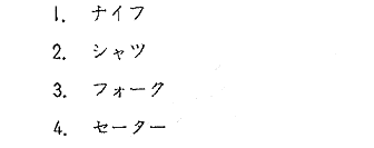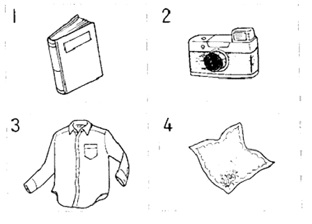 聴解スクリプト: (6) 女の人と男の人が話しています。男の人の荷物の中で一番多いものはどれですか。 女:大きい荷物ですねえ。本ですか。 男:ええ。そのほかに服やカメラも持っていますけど、まあ、ほとんどは。 女:へえ、で、お土産は? 男:もちろん買いましたよ。きれいなハンカチを二枚。 男の人の荷物の中で一番多いものはどれですか。