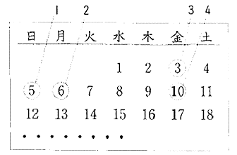 聴解スクリプト: (9) 女の人と男の人がカレンダーを見ながら話しています。二人はいつ食事に行きますか。 女:来週会社のあとで食事に行きませんか。 男:いいですねえ。いつがいいですか。 女:そうですね。私は月曜と木曜以外は大丈夫です。 男:そうですか。私は3日から5日まで大阪に行くので。 女:じゃ、この日にしましょう。 男:はい。 二人はいつ食事に行きますか。