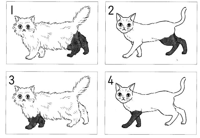 聴解スクリプト: 4ばん (女の人が話しています) いなくなった猫はどの猫ですか? 女うちの猫はいなくなりました。体が白くて、毛も長いの子で、後ろの足だけ黒い猫です。 猫を見た人は教えてください お願いします。 いなくなった猫はどの猫ですか?