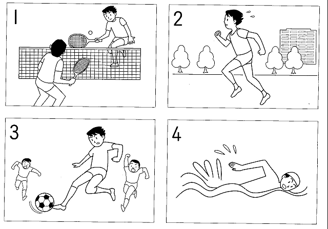 聴解スクリプト: 6ばん (男の人と女の人が話しています) 男の人がするスポーツはどれですか? 女:高橋さんはどのスポーツをするんですか? 男:なんだと思いますか? 女:サッカーとか 野球とか? 男:いいえ、大勢でするスポーツはだめなんですよ。 女:じゃあ、泳いだり、走ったり? 男:いいえ、一人だけのちょっと寂しくて。 女:あー。それじゃー 男の人がするスポーツはどれですか?
