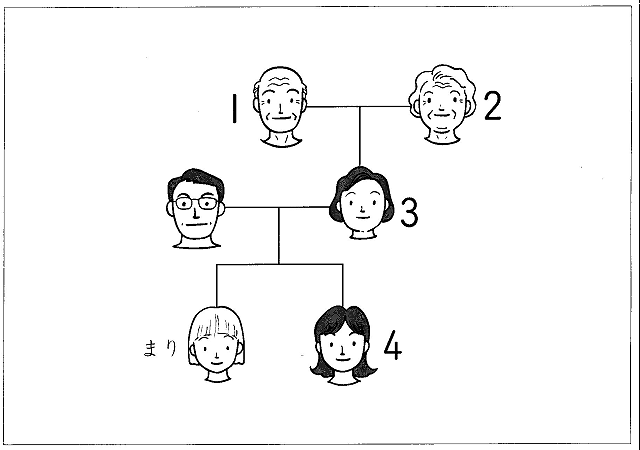 聴解スクリプト: 5ばん (男の人と女の人が写真を見ながら話しています) この男の人の一番上の娘はどの人ですか?一番上の娘です。 男:これ この前家族皆で撮った写真。 女:えー、奥さんいつも若いですね、うえの嬢さんたち二人はお母さんより大きいけど 高校生ですか? 男:いいえ、まだ中学生。上は三年生で、下は一年生。この大きい方が妹なんですよ。もうすぐ僕より高くなりそうでしょう。 女:本当。 この男の人の一番上の娘はどの人ですか?