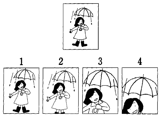 聴解スクリプト: 6番 男の人と女の人が上のポスターを見ながら話しています。ポスターをどう変えますか。 女:傘の宣伝ポスターこれでどうでしょう。 男:うん、大体いいけど。後絵をもう少し大きくしたほうがいいんじゃない。人物は胸から上だけにして。そうすれば傘がポスターの幅いっぱいになって強調できるし。 女:はい。 ポスターをどう変えますか。