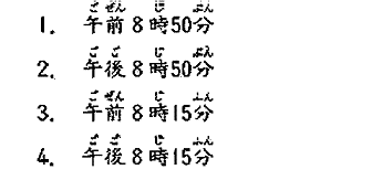Menu JLPT / 2005: JLPT-4 (N5-N4) Japanese language proficiency test 016 - Task 1, 2 Listening comprehension (Valid answers are at the bottom of this page)